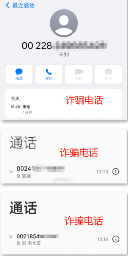特点一:号码特征。无论是短信还是电话,通讯号码都是以“00”或者“+”开头的非大陆或境外号码。