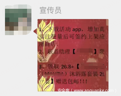 特点三:话术特征。多以“快递丢失或损毁”“回馈用户免费送”为噱头,进一步引导用户添加微信、支付宝或钉钉好友。