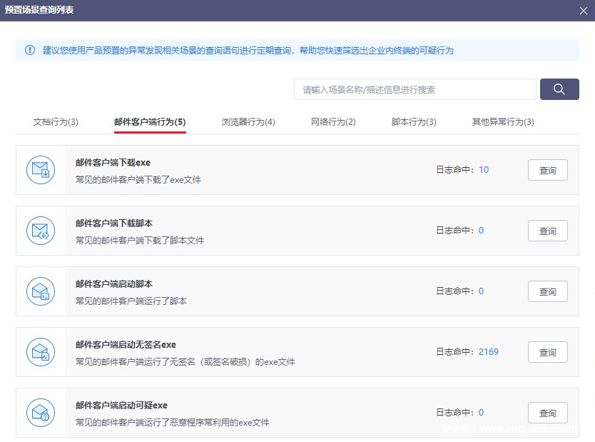 通常情况下,安全人员大多利用系统自带的日志进行跟踪,通过手工检索与人工分析的方式,再结合安全人员的经验来判断威胁是否得以彻底清除,这一过程耗时又耗力,在安全人员数量少、精力有限的情况下,很难实现。而合格的EDR可提供日志调查功能和威胁狩猎能力,让安全人员可以非常直观地跟踪处置后的态势,及时发现未清除干净的残余威胁。