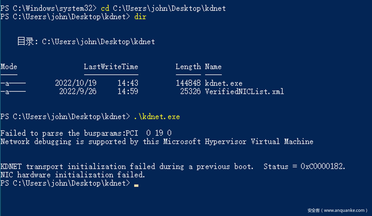 虽然我们的网卡位于 VerifiedNICList 中,但 kdnet.exe 无法正确解析。我们按官方手动配置教程进行设置: