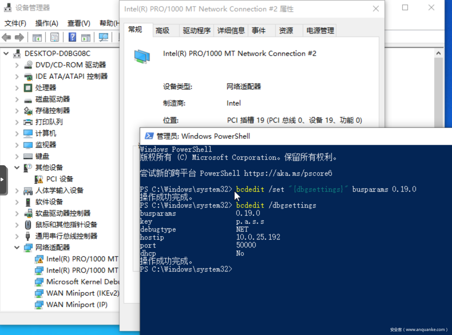 接下来完成 windows10 系统安装和基础配置,随后进行网络调试的配置;官方推荐使用 kdnet 工具进行自动配置,但并不能顺利配置;