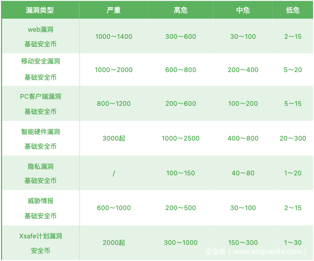 (漏洞基础贡献值=漏洞基础安全币/5)