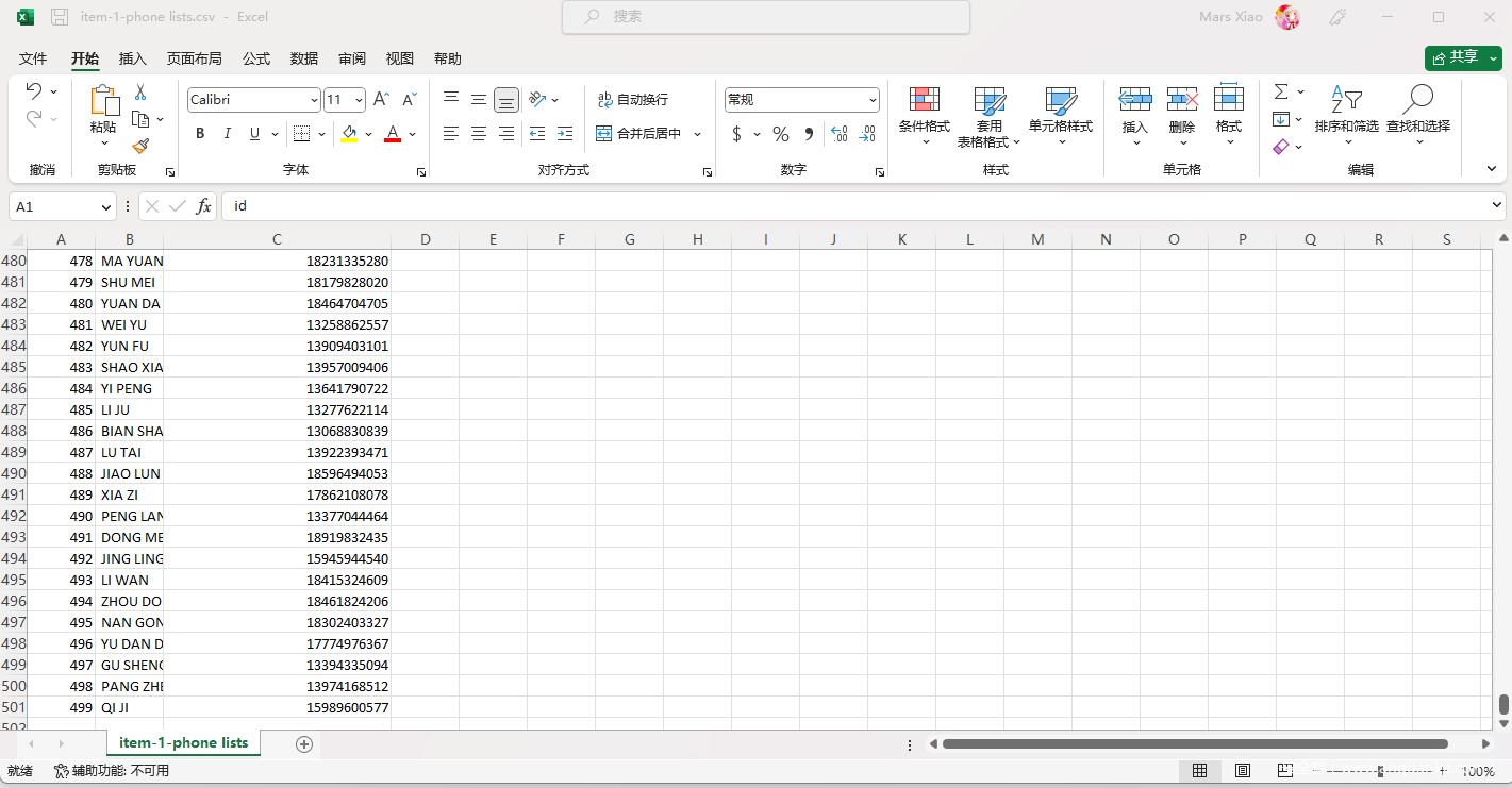 - 刚好导出的附件里面有一个csv,里面全是手机号