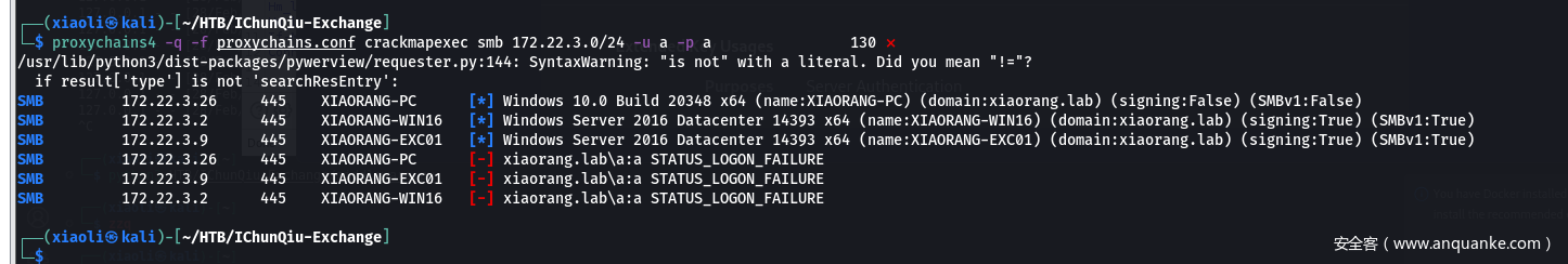 - SMB扫描内网主机,看到Exchange关键字 (EXC01),尝试访问