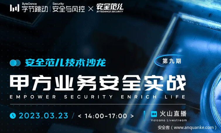 3月30日,第九期安全范儿技术沙龙再度开启,来自微软业务安全团队、无恒实验室、字节安全、雁行安全团队的攻防专家,将通过真实业务对抗案例,剖析业务安全痛点,分享业务安全实战经验,讲述如何在保障业务正常运行的同时,有效的抵御网络攻击,打击黑灰产,提升业务安全的整体水位。(PS:文末还有抽奖呦)