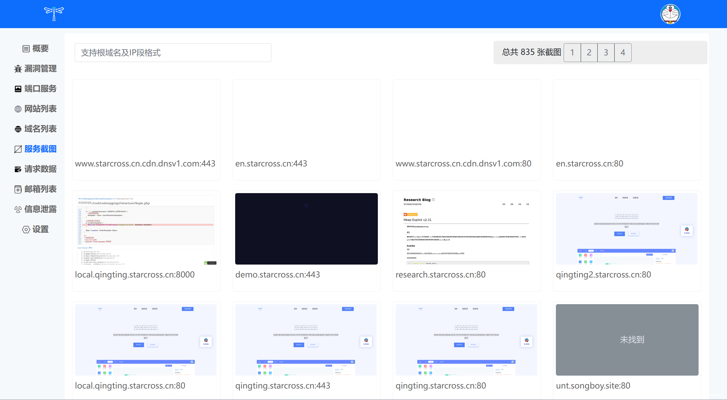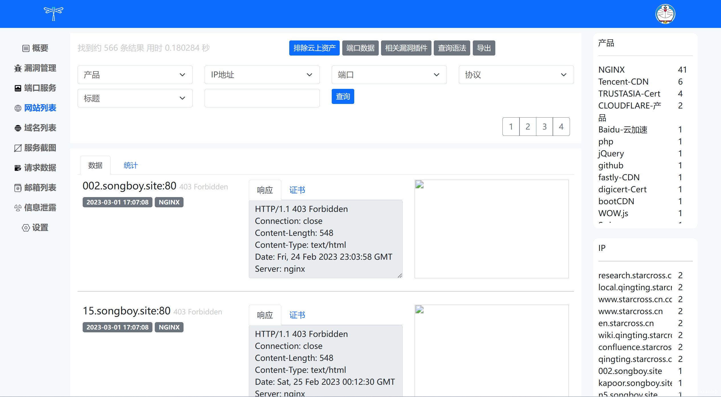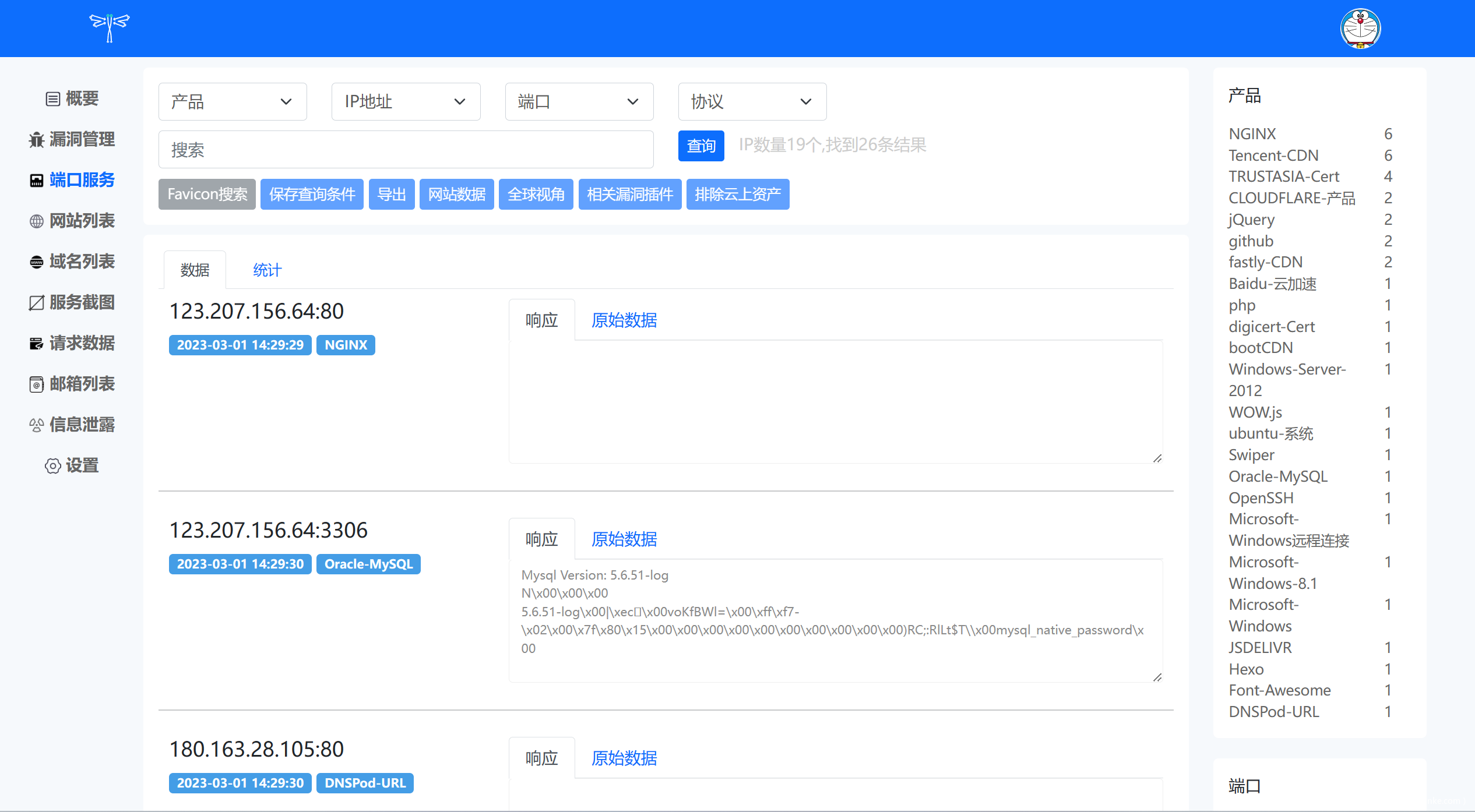 例如同ICP域名,子域名,对应IP,端口,URL地址,站点截图,端口协议,邮箱地址,泄露信息等.