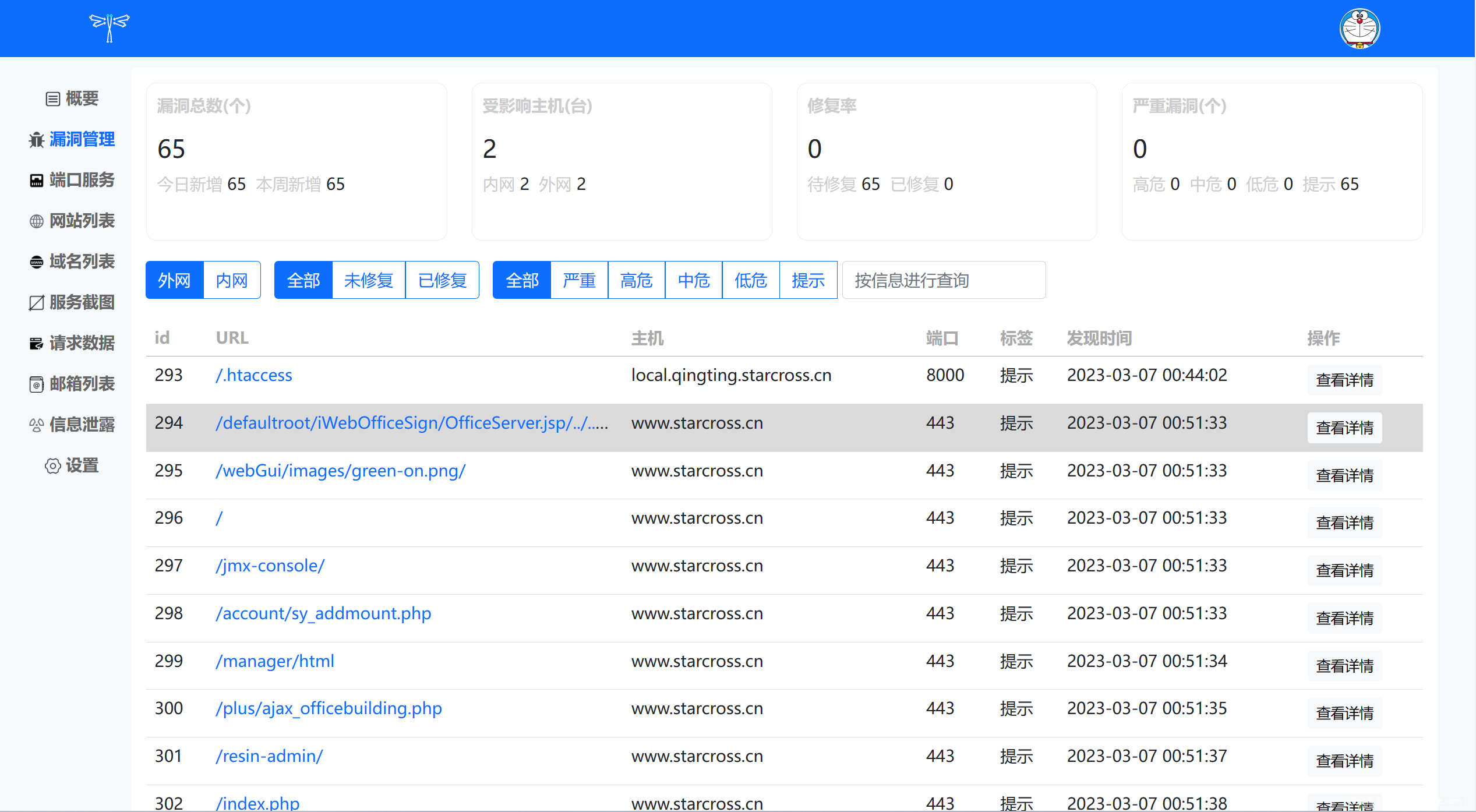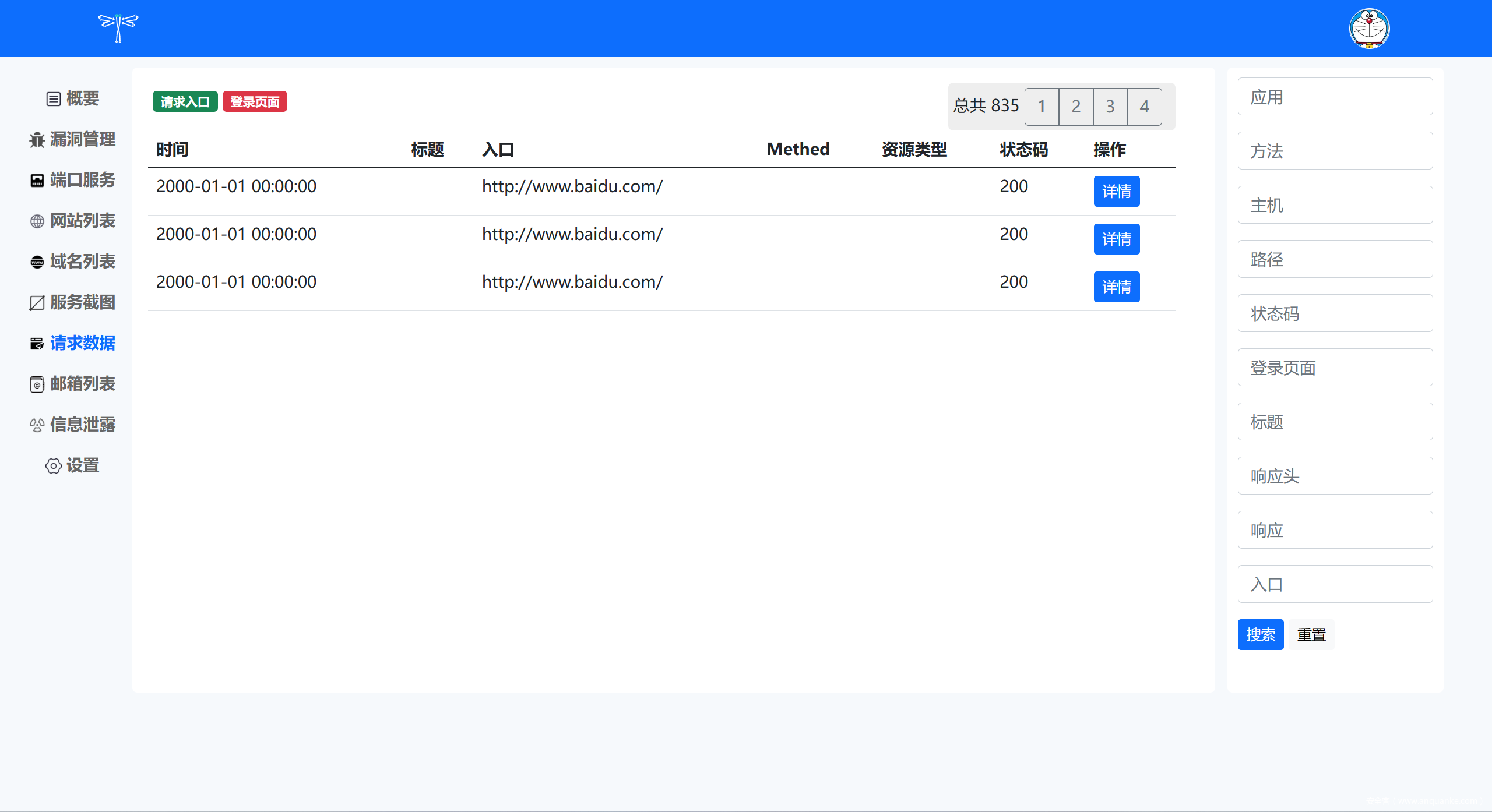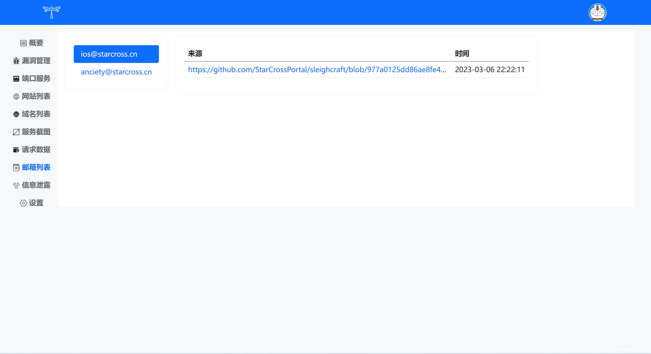 例如同ICP域名,子域名,对应IP,端口,URL地址,站点截图,端口协议,邮箱地址,泄露信息等.