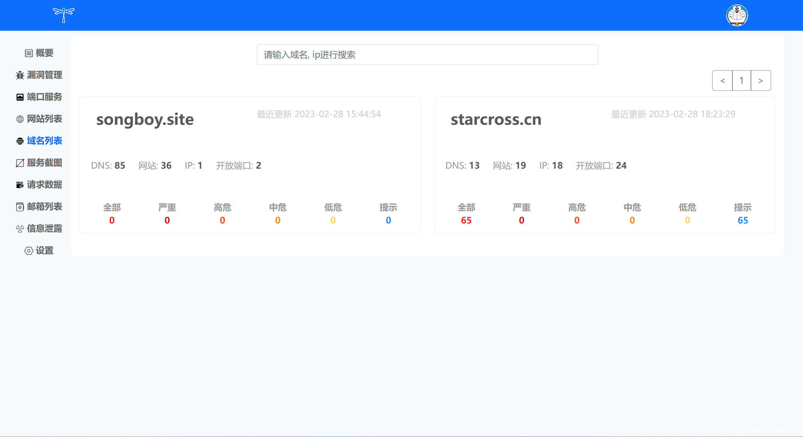 dolphin 是一个的资产风险分析系统,用户仅需将一个主域名添加到系统中,dolphin会自动抓取与该域名相关的信息进行分析;