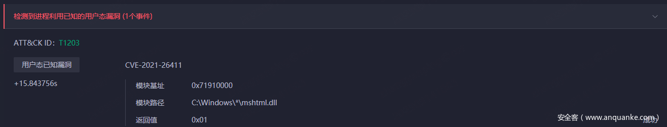沙箱云使用漏洞检测规则精准检测到该样本使用的漏洞。
