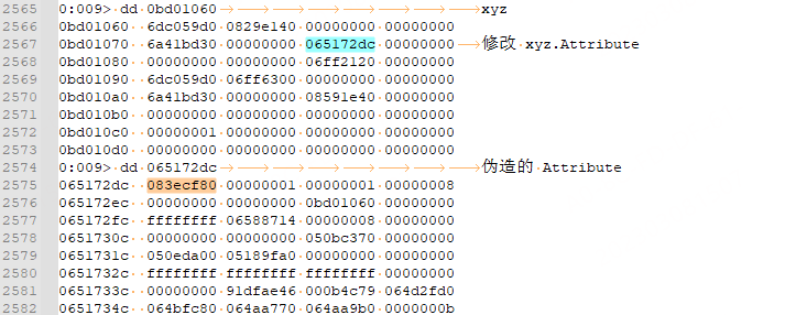 调用方式是先将 xyz 的 Attribute 指针修改为伪造 Attribute 的地址,然后调用 xyz.normalize(),调用完再恢复 xyz 的 Attribute 指针。