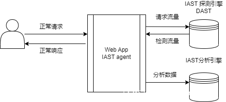 对于IAST来说,agent的检测模式通常被分为被动模式和主动检测模式。在被动模式下,agent可以动态获取一次请求的调用链、数据流等信息,基于获取的信息,IAST可以做一些基于污点追踪的白盒分析,从而检测该次请求的调用链中是否存在漏洞;在主动模式下,agent会hook一些危险函数,当一次请求触发到这些危险函数后,agent会将该次请求发送给IAST server端,并使用DAST能力发送攻击payload做主动验证。基于这些特性,IAST非常适合融入到DevOps的测试环节,在业务测试完成正常功能逻辑测试工作的同时,无感知的进行一些安全漏洞的检测。