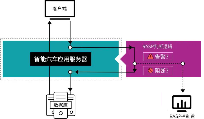此外,上线后持续安全运营的实现离不开RASP(运行时程序自我保护)技术。RASP能结合应用的逻辑及上下文,以函数级的精度对访问应用系统的每一段代码进行检测,实时监控安全状况、记录及阻断攻击,而无需人工干预。