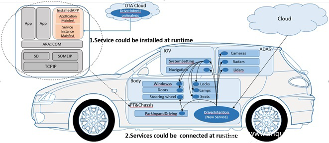 长期来看,为了实现软件定义汽车,智能汽车软件架构正在向SOA(Service-Oriented Architecture,面向服务的分布式架构)转型升级。SOA将重构汽车生态,汽车行业很可能复制PC和智能手机“底层硬件、中间层操作系统、上层应用程序”的软件分工模式,新的架构将涌现出智能汽车中间件的行业巨头,新生态和应用开发的代码数量将提升10—100倍。