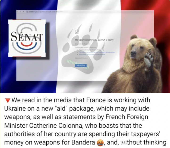 法国参议院的网站在黑客声称已将其关闭后于周五(5月5日)下线,“自今天(5日)早上以来,对该网站的访问一直中断,”议会上院在中午前不久在Twitter上表示,并表示一个团队正忙于解决这个问题。一个在Telegram上自称NoName的组织声称对此负责,称其采取行动是因为“法国正在与乌克兰合作制定一项新的‘援助’计划,其中可能包括武器”。同时,该组织表示它已在3月份将法国下议院国民议会的网站关闭几个小时。它还声称它是上个月乌克兰总理丹尼斯什梅哈尔访问该国时加拿大政府网站中断的幕后黑手。