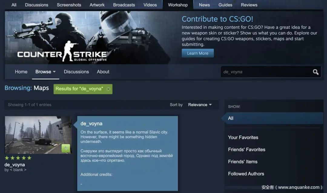 那些有兴趣在他们的 CS:GO 安装中下载“ de_voyna ”的人可以通过游戏中的“Workshop Maps”部分或 Steam 桌面或 Web 应用程序进行下载。