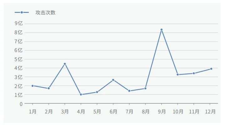 创宇安全智脑针对全年的攻击分析发现,2022年全年共出现两次境外攻击高峰,分别出现在3月和9-10月间,正处于全国“两会”和“党的二十大”的召开期间。