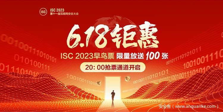 3折早鸟票抢购仅限100张,点击访问ISC官网https://isc.360.com/new/2023/618.html立即抢票!