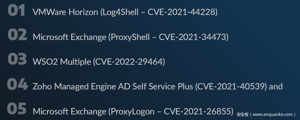 图4 2022年攻击者利用TOP5漏洞