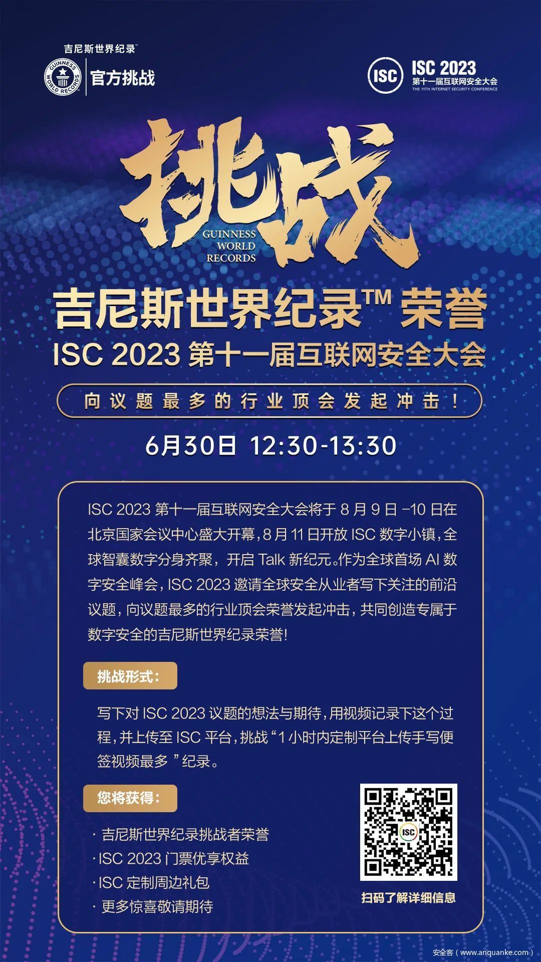 6月30日12:30-13:30期间,登陆ISC官网,和ISC一起创造专属于数字安全的吉尼斯世界纪录荣誉,向议题最多的行业顶会荣誉发起冲击!共筑安全盛会,共享至高荣誉!