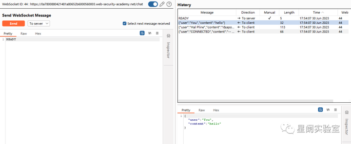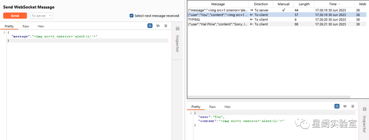 当服务器没有对转发的内容做安全防御或过滤时,通过修改WebSocket API消息体实施xss攻击。