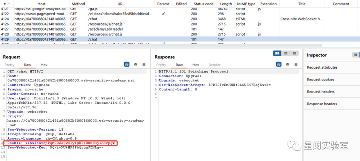 在WebSocket握手请求中发现仅仅是靠cookie进行会话处理,并没有CSRF的防护手段。