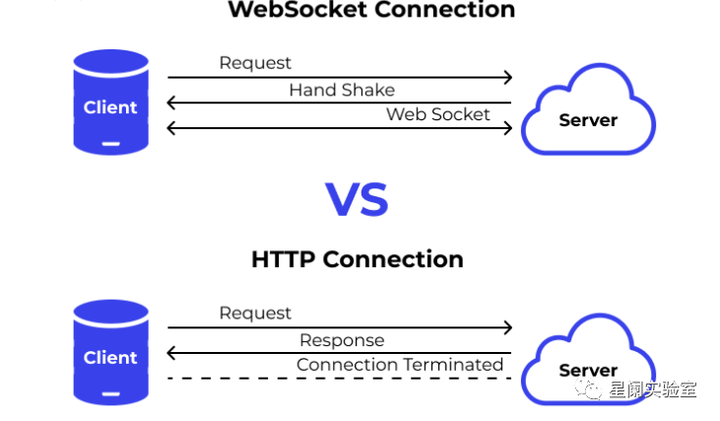 - 较少的控制开销。在连接建立后,服务器和客户端之间交换数据时,用于协议控制的数据包头部相对较小。在不包含扩展的情况下,对于服务器到客户端的内容,此头部大小只有2至10字节(和数据包长度有关);对于客户端到服务器的内容,此头部还需要加上额外的4字节的掩码。