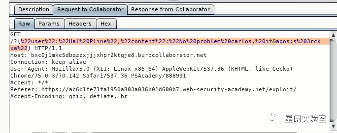漏洞利用服务器并将漏洞利用程序传递给受害者,然后在攻击者也就是我们创建的burp client中返回了受害者相关敏感信息。