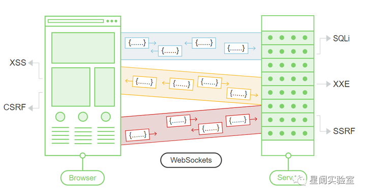实际上,几乎所有的Web漏洞都有可能出现在WebSocket中。因为,WebSocket本质上就是一个通过HTTP建立连接的双向全双工的通信协议而已,但由于其相比HTTP多了一“工”的特性,可能会出现一些WebSocket API特有的攻击场景。所以,WebSocket API除了面临着传统API的安全风险之外,还有容易遭受由于自己特殊性而产生的攻击,这些攻击来自于WebSocket API的握手请求流程。