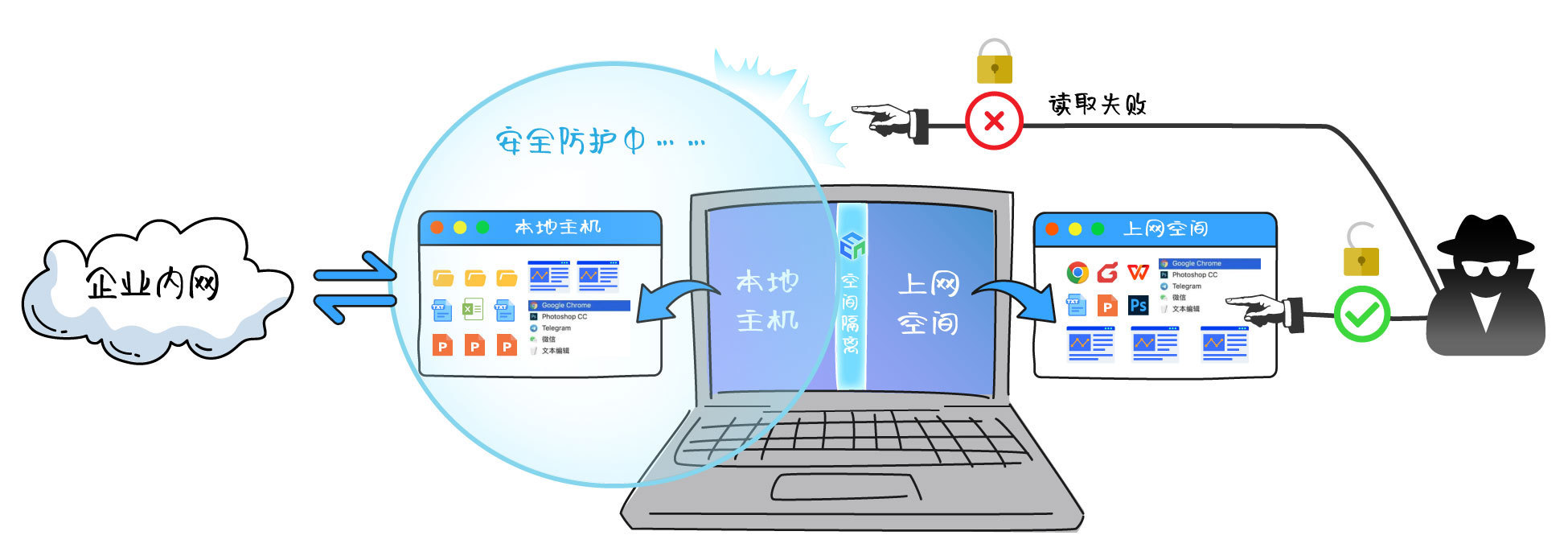 解读:用户隐私的泄露根本原因在于操作系统内核具有对物理内存完全的访问控制能力。EnBox划分不同空间映射不同操作桌面,做到个人空间和工作空间的文件加密隔离,合法流量的传输,保护用户隐私数据不被泄露。
