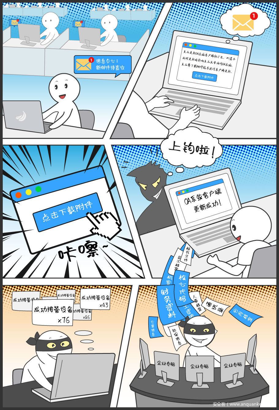 不久后该公司便发生了严重的财务和研发资料泄露,造成了难以挽回的损失。事后通过专业安全公司的紧急排查,才发现源头竟然是那封邮件惹的祸,并且当天就有76名员工下载并运行了附件程序。