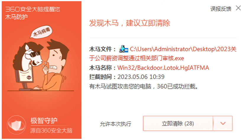 在刚刚过去的2023年上半年中,针对财务人员的RustDog钓鱼木马始终活动频繁。而就在近期,360安全大脑再次监测到该钓鱼木马活跃度进一步提升——据360终端安全产品的大数据日志统计——360各类安全产品日均阻断该木马攻击已达数千次。