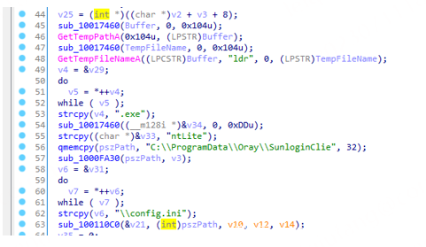 木马通过0x83命令功能,首先会获取temp目录下”ldr”开头的文件,然后复制向日葵配置文件到如下路径中: