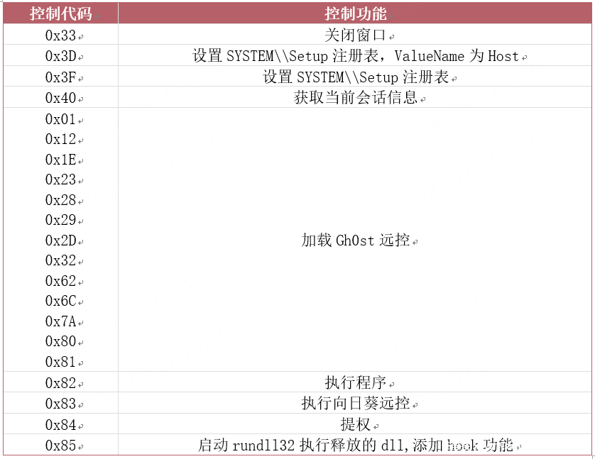 远控的控制通信也是经过了简单加密的,而在分析人员对其进行解密之后可以看到该木马所具备的控制功能均属于比较常规的远控指令。