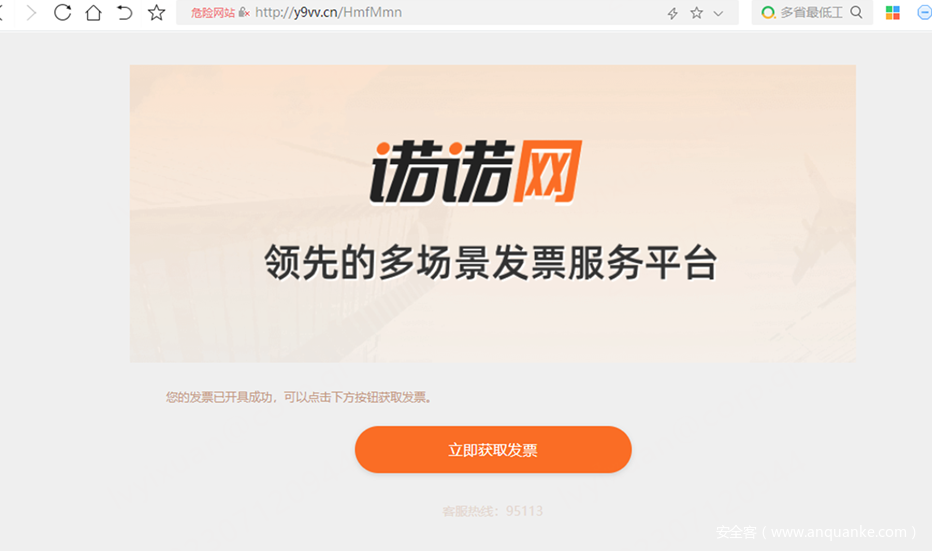 图1 攻击者伪造的虚假“诺诺网”钓鱼页面