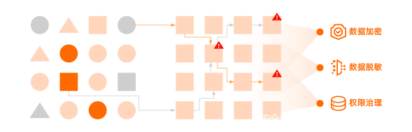 提升可见性、发现态势风险,最终都导向对数据的细粒度防护,阿里云数据安全中心通过数据动静态脱敏、数据加密、数据审计,提供客户数据风险治理的手段。