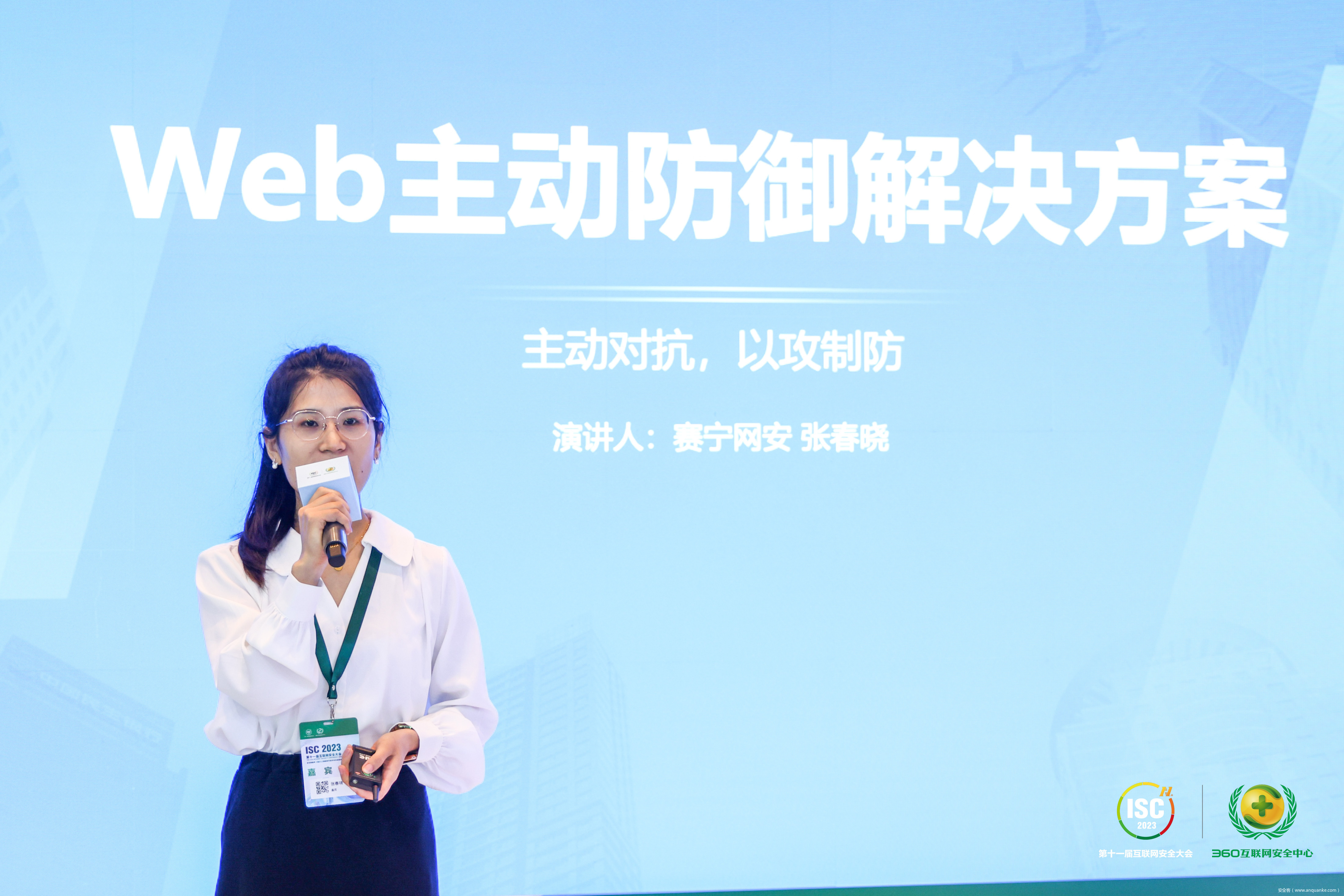 另外,赛宁网安产品营销经理张春晓出席本次展区的开放路演环节,以“Web主动防御解决方案”为主题分享报告,将最新推出的主动防御体系通过演讲形式展示,让现场观众和客户重点了解赛宁“主动对抗,以攻制防”的产品理念及应用实践。
