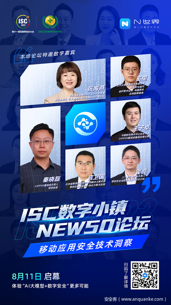 ISC数字小镇NEW50论坛移动应用安全技术洞察邀请了国家相关机构代表、业内前沿专家学者,共同探讨移动业务场景下的安全经验,分享解决方案思路和方法,帮助行业更好落地移动业务安全。