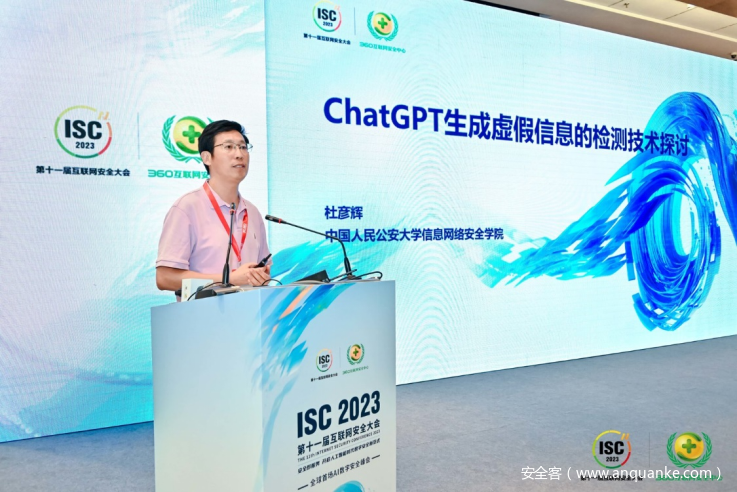 中国人民公安大学信息网络安全学院杜彦辉教授在主题演讲中表示,大语言模型带来好处的同时也伴随着生成虚假信息、形成网络攻击及其他安全问题。如何发现ChatGPT生成的虚假信息并提升安全防御能力是我们需要关注的重点。