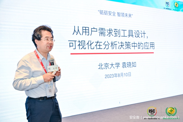 北京大学智能学院研究员、博士生导师,大数据分析与应用技术国家工程实验室常务副主任袁晓如在主题演讲中分享了可视化在分析决策中的应用。他表示,可视化不仅仅是简单的数据翻译和转化,需要从数据、目标、方法等方面综合考虑,进而帮助分析理解数据。