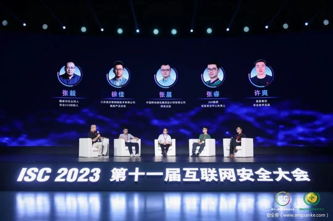 随后的圆桌论坛上,安全419创始人张毅,江苏易安联网络技术有限公司高级产品总监徐佳,超星集团安全技术总监许爽,中国移动通信集团设计院有限公司安全产品研发总监张晨,360集团信息安全中心负责人张睿从学术、技术和产业界等视角切入,一同探讨“智能可信时代的安全挑战”。