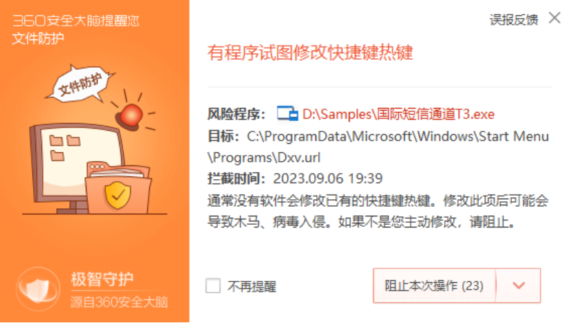 所以,为了能给用户带来更加良好的使用环境,同时也是为了提升360的安全能力以求真正做到无死角的全方位安全防护,360安全终端独家增加了对此类快捷键注册行为的拦截能力。