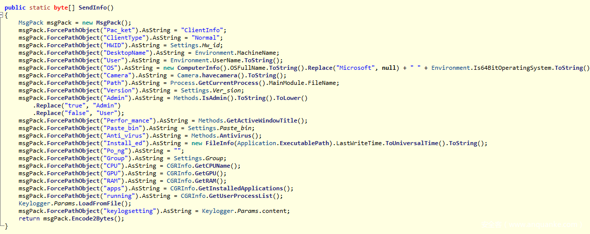 与大多数木马的基本操作相同,恶意代码也会搜集及用户的各类系统常规信息——如机器版本、CPU参数、内存等。