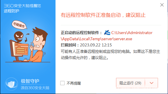 根据监控数据显示,该木马常见的传播名称包括:“关于2023企业所得税减缓最新规.exe”、”税务补贴服务端EXE.EXE”、” 2023年财务人员的中秋福利.exe”等。360安全大脑每天都会阻止上千起此类攻击。