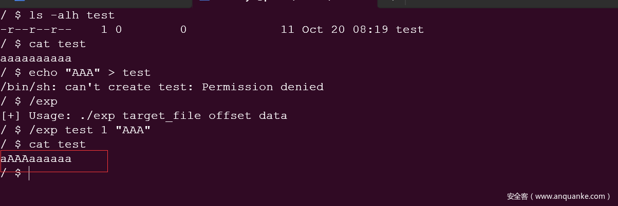 - 攻击效果:普通用户可以覆盖任意可读文件中的前一页大小的数据(如果文件大小有一页的话)