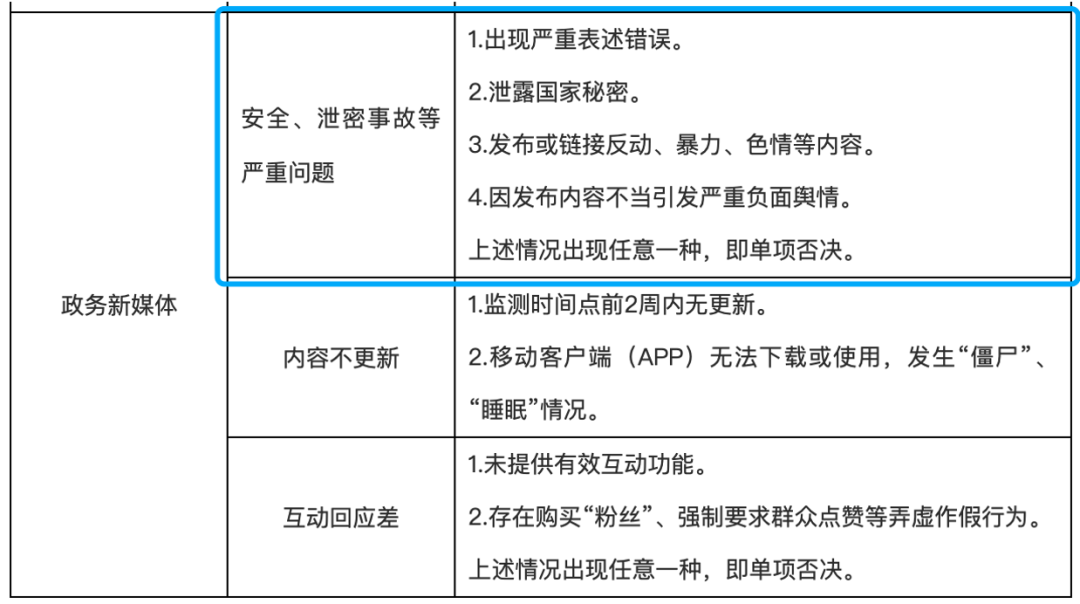 在《通知》发布的对政府网站和政务新媒体的检查指标中,首项便是“出现严重表述错误”、“发布或链接反动、暴力、 内容”等指标。由此不难看出,严谨、正确是对政府网站、政务新媒体信息发布的基本要求。