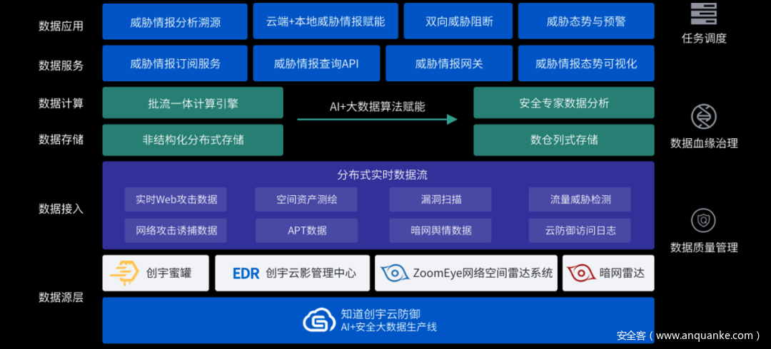 所谓“知己知彼,百战不殆”,若能提前获知攻击者情报,便能在防御时利用信息差获取主动权。知道创宇基于十余年来“AI+安全大数据”在真实攻防场景中的经验积累,打造了创宇安全智脑这一能实时输出高精准、高价值威胁情报,赋能于全场景安全建设体系的情报生产平台。