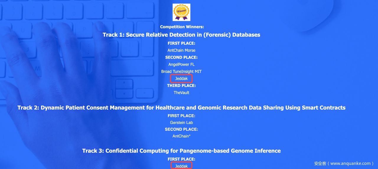 整个方案是Jeddak Team联合香港城市大学、南方科技大学共同设计与实现。最终在本届iDash大赛上取得了第一名的优异成绩。