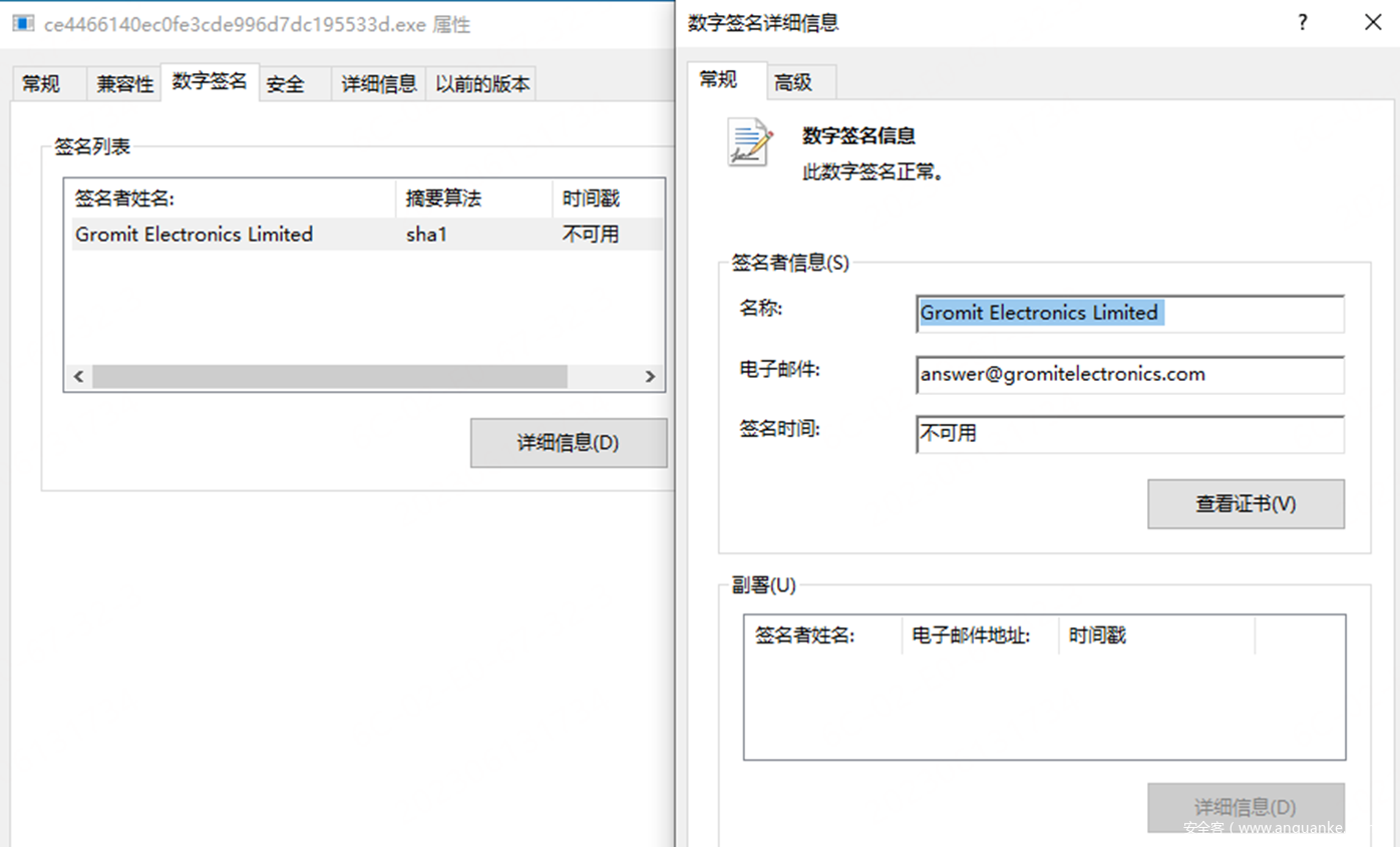 并且后续又调用了cmd启动了样本pfx.exe和fnpw.exe,它们都拥有Gromit Electronics Limited的数字签名。此前这些签名出现在摩诃草组织的攻击活动中,所以我们怀疑组织之间可能存在资源的共享。