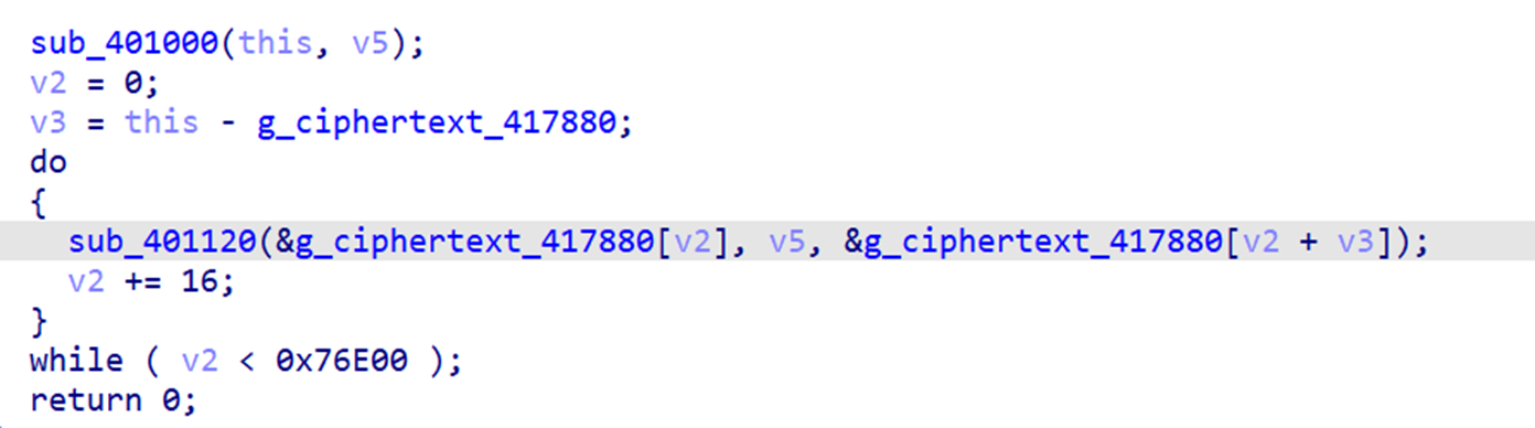 该样本属于攻击手法2中的利用lnk文件远程下载后续payload,最终我们从https://webmail[.]mod[.]com[.]pk/uploads/adrean.exe上拿到的该样本。该样本与上面的dr.exe样本功能上基本一致,解密算法上采用了AES ECB模式,key为tl2au9iXc956j8m7,部分解密算法如下: